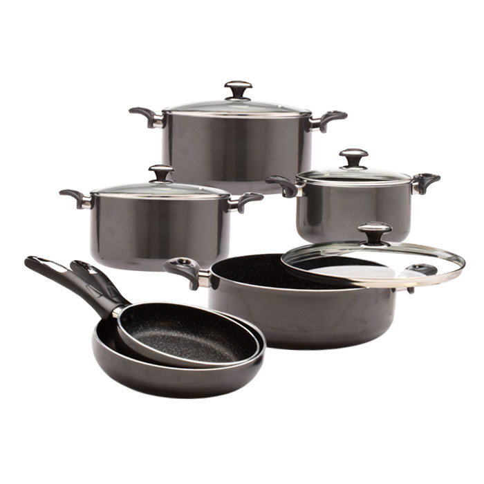 سرویس 10 پارچه گرانیت زرساب با افتخار از جنس آلومینیوم ضخیم ساخته شدهاند، که این جنس با پوشش 5 لایه گرانیتی متمایز میشود. این پوشش به محصول ما ویژگیهای منحصر به فردی افزوده است، از جمله مقاومت بسیار بالا در برابر خراشیدگی و سایر آسیبهای ممکن.